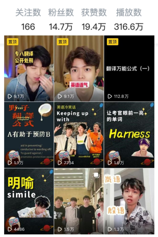 除此之外,杨泽航是全网拥有超过20万粉丝的英语博主,他哔哩哔哩“万能翻译公式”节目全网(哔哩哔哩、抖音)已有近500万播放量。