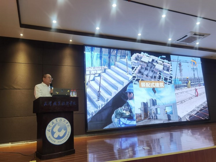 顾亚辉,工民建89408班校友。此次百忙之中专程从石家庄回到母校,发表了题为《不忘初心,勇攀高峰》的讲话,讲述了自己在建筑行业创业奋斗的历程,向现场师生毫无保留地分享了自己三十余载的打拼实战经验,他感谢武职的培养,让他在而立之年能够一直坚持在建筑行业砥砺前行,介绍了建筑行业的前沿科技,如建筑BIM工程应用、建筑智能机械、建筑3D打印技术应用等。他分享了从业感悟,勉励建筑学院学子在校学习期间把握各种实习机会,力行实践与理论相结合,脚踏实地,行稳致远。