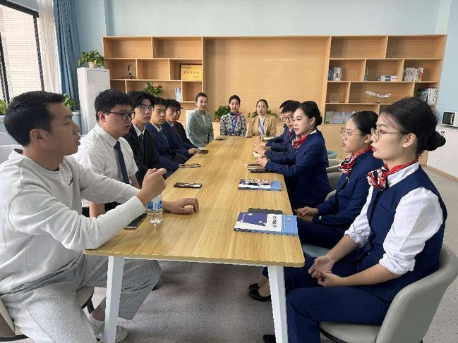 会议由校企合作单位北京广慧金通教育集团武职工作处副主任彭梦伊主持,企业辅导员杨雪洁、马宁宁及空中乘务专业、机场运行服务与管理专业10名学生代表参加交流会。