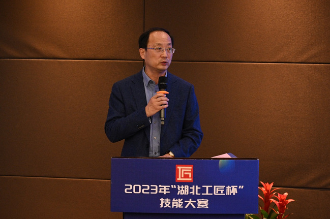 武汉职业技术学院副校长杨旭东代表学校致辞,对本次比赛的顺利举办表示祝贺,并简要介绍了学校办学情况。他表示,学校将以协办此次比赛为契机,为全省互联网营销师和网络信息审核员搭建切磋技艺、交流经验、提高技能的平台,激励广大技术从业人员走技能就业、技能成才、技能报国之路,为推进湖北省广播电视和网络视听行业高质量发展提供人才保障和技能支撑。学校将紧抓机遇,在人才培养等方面与传媒产业深度互动,深化产教融合、校企合作,共同推进新媒体专业群建设、拓展新媒体技能培训、塑造新媒体发展新动能,为服务湖北区域经济发展输送更多传媒产业高素质技术技能人才。