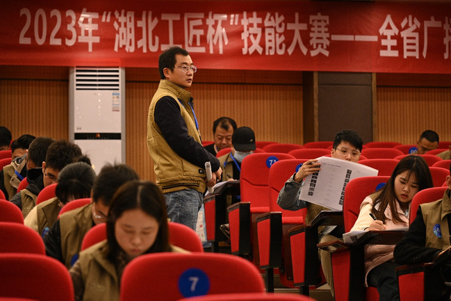 武职网讯(通讯员 黄博韬 大学生记者 袁若彤 韩玉麟)11月19日,由湖北省广播电视局、湖北省人力资源和社会保障厅、湖北省总工会、荆门市人民政府联合主办,湖北省网络视听协会等单位承办的2023年“湖北工匠杯”技能大赛——全省广播电视和网络视听行业职业技能大赛暨广播电视技术能手竞赛(互联网营销师和网络信息审核员赛项),在武汉职业技术学院凌峰楼C11报告厅举行。