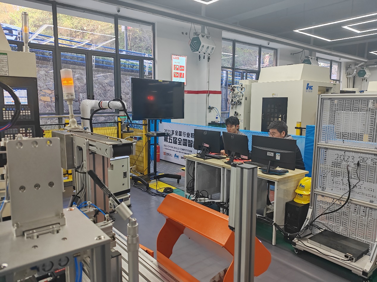 大赛分三个赛区进行,共设置5个赛项,分职工组、学生组两个组别,均为双人团体赛。来自全国28个省、市、自治区的42支代表队同场竞技。我校代表队两名选手在机电工程学院教师周帆指导下,参加了为期4天的数字孪生应用技术员赛项理论考试和实操比拼,展现了专业风采和技能水平,为学校赢得了荣誉。参赛团队师生表示将认真总结,继续努力,争取更好的成绩。