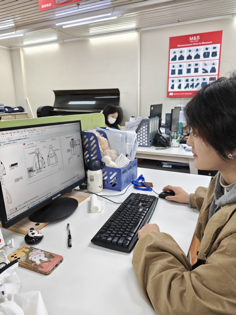 在集团技术部实习的服工21301班张丽雯说:“课程内容主要围绕服装生产管理课程的重要知识点服装工艺单的制作展开,在近一个月时间里,我完成了近20份的工艺单制作。这次课程实践让我受益匪浅,拓展了专业知识,锻炼了解决问题的能力。最重要的是,真实的工作环境让我真正意识到了未来的职业方向和目标,服装技术大有可为。”