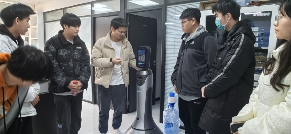 1月10日,计算机学院2022级人工智能技术应用、大数据技术专业11名学生在人工智能教研室主任高源和大数据专业负责人陈觎的带领下,走进泰迪智能科技(武汉)有限公司,参观企业文化展厅、产品展厅和开发实验室,了解自主移动机器人的工作原理、运用技术、计算路径,身临其境地感受企业工作环境和文化氛围。