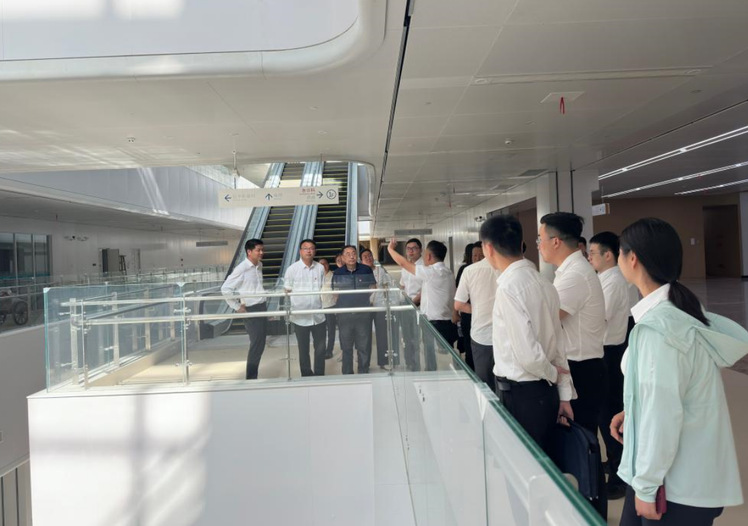 座谈会后,周仔荣一行在项目经理张旭等人的陪同下,参观鄂州市中心医院项目现场。建筑学院专业教师、现场技术人员在施工工艺、测量方案编制、设备检测、项目质量管理及研发创新方面交流的如火如荼,这份对建筑的专业和认真,给烈日下的坚守带来了丝丝清凉。