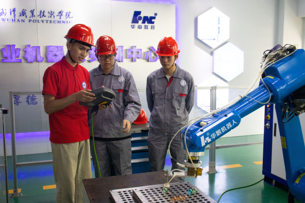 “太神奇了!经过编程、调试的工业机器人,我只需要点一下屏幕,就能完成复杂的指令了!”参与体验的青年学子在实训室助理的帮助下顺利触发了各类指令。