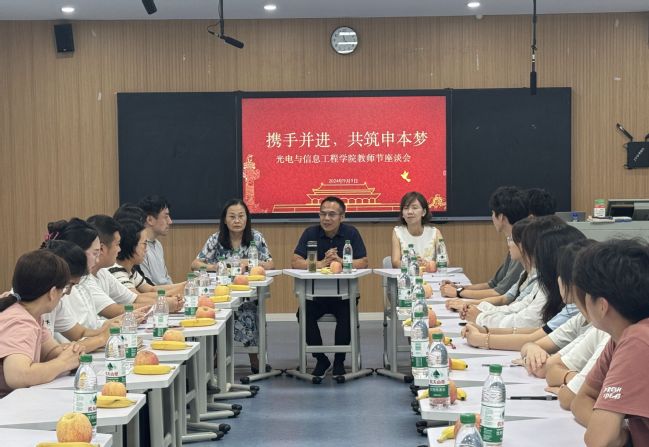 新闻网讯(通讯员 董炼 摄影 钱鑫垚)9月9日下午,在第40个教师节来临之际,光电与信息工程学院分工会举办了一场温馨而庄重的教师座谈会。光电与信息工程学院党委书记涂运祥、老教师代表、新进教师代表和学生代表共聚一堂,庆祝这一荣耀的节日,展望学院事业发展美好未来。