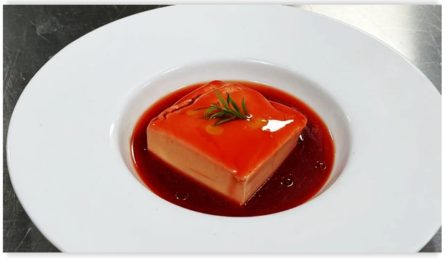 随后,鞠小琦向参会的中国驻斐济使馆工作人员发布张辉主厨的最新创新菜品——朱樱红·烈焰豆方,展示旅游与航空服务学院在推动产学研创融合方面取得的积极进展。
