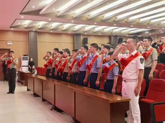 在欢迎军人返乡环节,与会领导为退役军人代表颁发绶带、佩戴大红花。全体退役军人起立宣誓,以铿锵有力的誓言传递退役不褪色、永远跟党走的坚定信念。