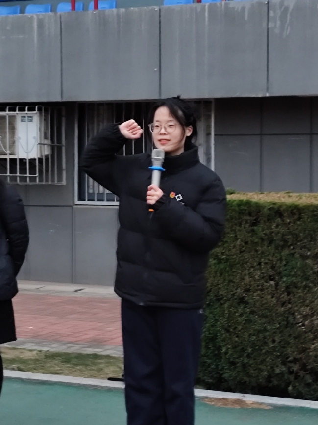 应英23301班张文璇以《鉴史明志,青春逐梦》为题作国旗下的讲话。她说,八十九年前的今天,北平数千名热血青年学子举行的“一二・九”抗日救国示威游行运动,点燃了中华民族心中抗日的熊熊烈火,是中国青年运动史上的光辉篇章。今天,我们青年学子生逢其时,重任在肩,应勿忘历史,厚植爱国情怀,增强民族自豪感;应从历史中汲取精神养分,塑造爱国、坚毅、担当品质;应精研专业本领,将所学知识与实际应用紧密结合起来,报效国家。她带领全体学子庄严宣誓,以青春小我,共筑华夏辉煌新篇章!