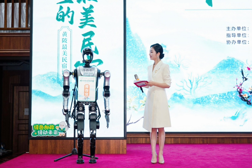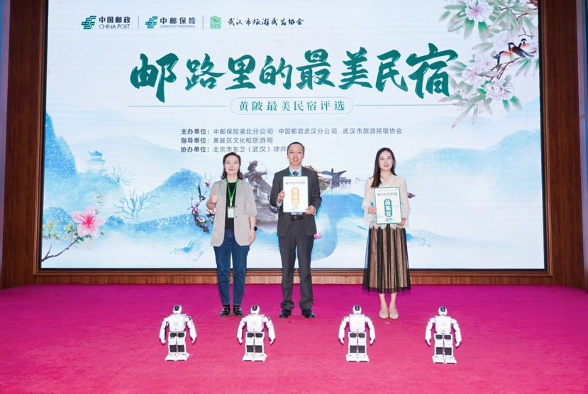 4月26日,由武汉邮政分公司、武汉市民宿协会主办,黄陂区文化和旅游局指导的“邮路里的最美民宿”评选活动发布会在野村谷会议中心隆重举行。武汉职业技术大学人工智能学院(信创产业学院)机器人团队应邀出席,为活动带来了一场融合前沿科技与文旅创新的智能互动表演,充分展现了职业教育服务地方经济、赋能乡村振兴的创新实践。