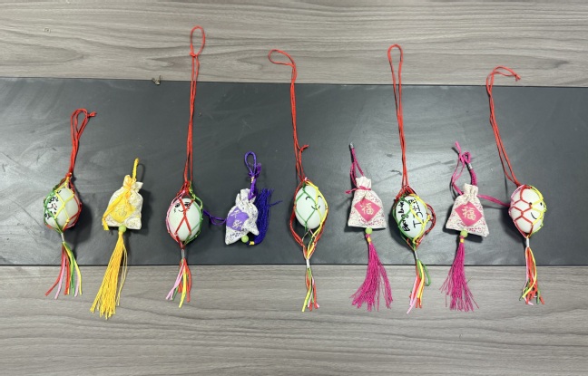 正午阳光透过玻璃窗,留学生们兴奋地拿起亲手制作的端午作品拍照记录。