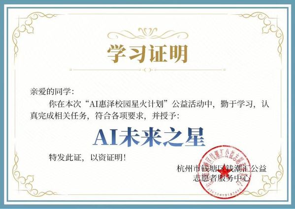 新闻网讯(通讯员 何丹、袁昌宁)6月12日,武汉职业技术大学联合杭州钱潮汇公益志愿者服务中心、与导同行教育科技研究院,依托“一站式”学生社区启动的“AI 惠泽校园星火计划”专题培训落下帷幕。这场为期一个月的系列活动以七场直播课程吸引全校800余名学生踊跃参与,在校园内掀起AI知识学习的热潮。