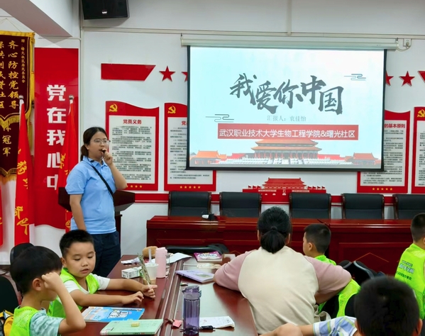 今年暑期,这样充满童趣的生物科普场景在该托管班频频出现。7月7日至25日,武汉职业技术大学生物工程学院积极响应团省委及校团委号召,依托 “童” 心协力志愿服务团队,联合曙光社区开展了暑期 “爱心托管班” 社会实践活动。活动设置生物科学、红色文化、实践赋能等主题的特色课程,融合专业特色与儿童趣味,为社区40余名小学生提供了丰富的暑期托管服务。