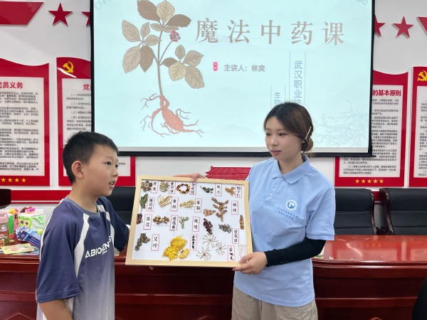 随后开讲的“魔法中药课”同样精彩。林爽教孩童们识别常用中药材,引发热烈讨论。“原来板蓝根长这样呀!”“老师,我奶奶眼睛不好,是不是可以用决明子泡茶喝呀?”在童声稚语的交流中,好奇与求知的种子悄然在孩子们心中萌芽。