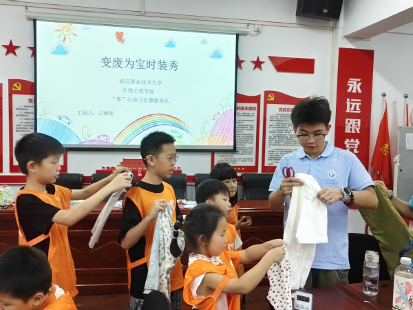 “世界上没有垃圾,只有放错的宝藏。小朋友们在旧物改造中锻炼的创新思维与动手能力,可以提升他们的综合素养,是博闻强识的基础。”药营24301班罗佳颖解释了相关手工课程设置的初衷。