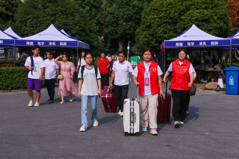 秋光正好,凌家山迎来新主人。9月7日至8日,武汉职业技术大学迎来升格本科后的首届新生。校园内外,“志愿红”成为最温暖的风景——从车站到宿舍、从校门口到学院,志愿者们用热情与汗水,为2025级新生铺就了一条温暖而顺畅的入学之路。