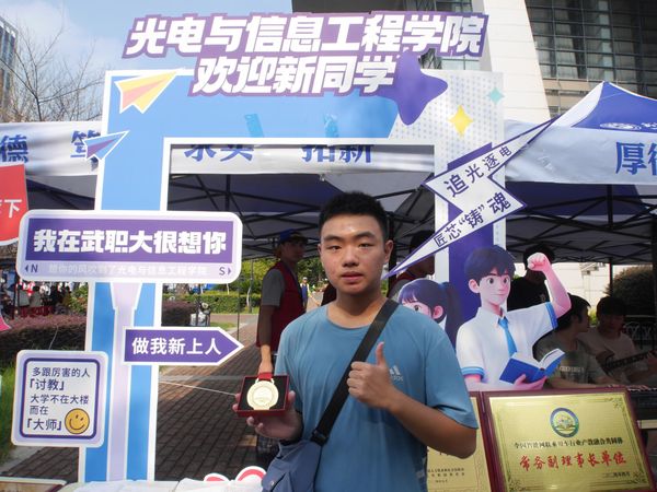 作为光电与信息工程学院首届本科生班主任代表,李镜人博士在迎新现场寄语新生:“我们以科技互动与人文关怀相结合的方式迎接你们,希望大家以优秀学长为榜样,在实验室的灯火、赛场的拼搏、课堂的思辨中不断‘追光逐电’,锤炼本领,成长为德才兼备、全面发展的新时代卓越人才。”