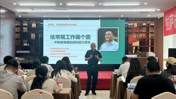 拉萨市第二中等职业技术学校学工处主任边巴塔杰作动员讲话,强调要珍惜学习机会,将先进理念带回家乡,转化为推动学校德育工作的实际能力。