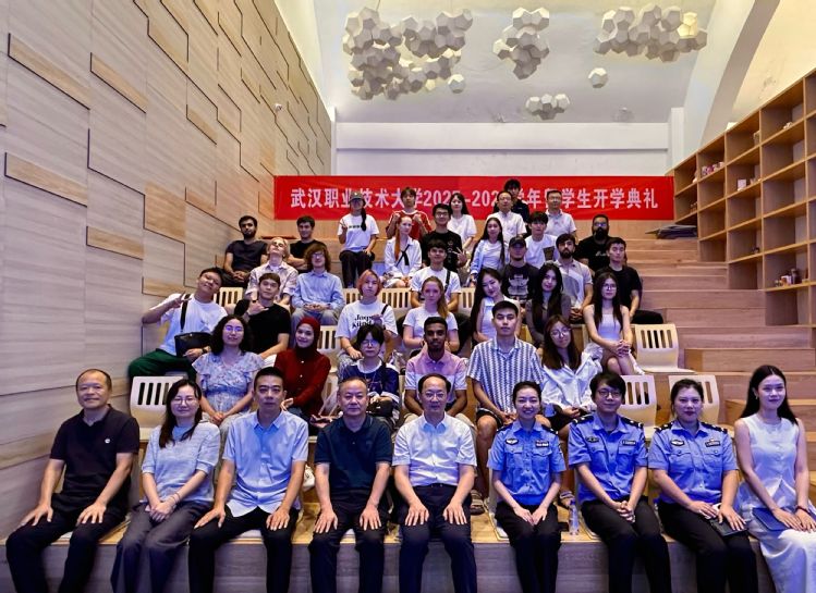 武汉职业技术大学副校长杨旭东、武汉市公安局东湖新技术开发区分局人口(出入境)管理大队代表出席开学典礼,与武汉职业技术大学对外合作与交流处(国际学院)和外语外贸学院负责人,以及留学生班主任、任课教师共同见证这一重要时刻。
