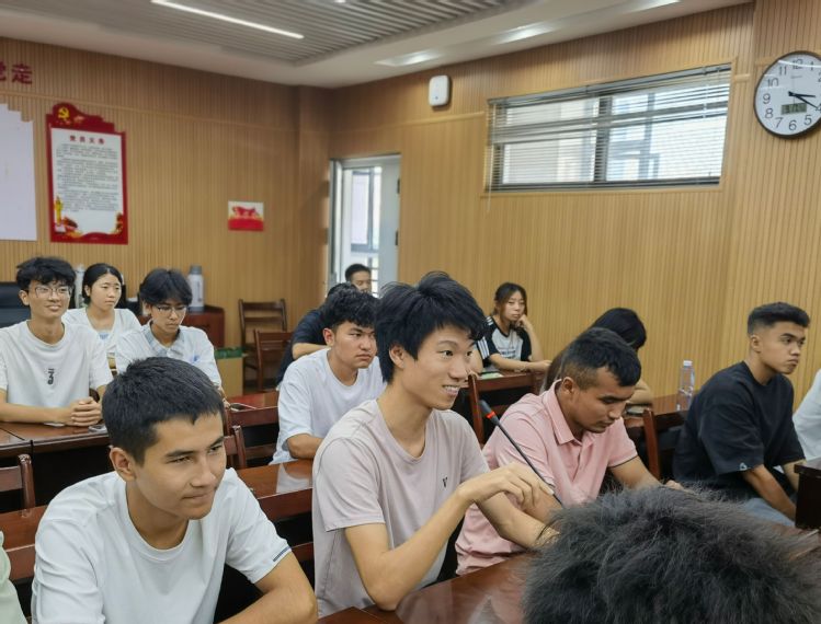 在互动交流环节,现场师生踊跃提问,氛围热烈。光电与信息工程学院辅导员彭美佳结合日常学生工作中遇到的实际问题发问,徐俊丽从“文化浸润与实践引领相结合”“统筹大集体教育与小场景渗透”的角度,给出具体可操作的指导建议;针对学生代表提出的“民族团结的粘合剂是什么”这一问题,徐俊丽进行了精准且生动的即兴解答,深化了学生对民族团结内涵的认知;一名学生代表分享了自己在武职的成长感悟,言辞恳切:“与不同民族的同学朝夕相伴、互帮互助,我真切体会到了‘中华民族一家亲’的温暖。“