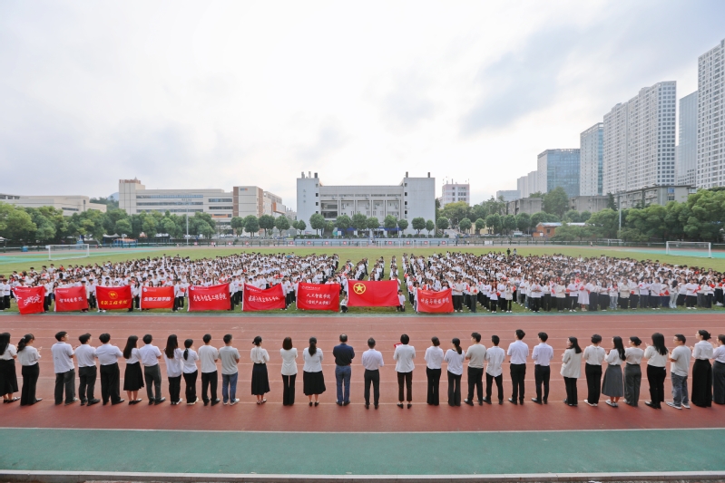 新闻网讯( 通讯员魏子汉 摄影王诚、张马涛、朱印) 秋阳初升,旌旗飞扬。9月29日清晨,武汉职业技术大学“传承红色基因 践行技能报国”主题升旗仪式在光谷校区田径场举行。副校长刁元斌出席仪式,学生工作处、团委负责人,时尚与传媒学院全体政工干部,各二级学院师生代表共两千余人齐聚现场,共同致敬祖国华诞,传承红色薪火。升旗仪式由校团委主办,时尚与传媒学院党委副书记陈玲玲主持。