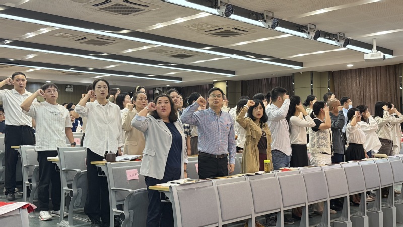 “我志愿加入中国共产党……”在酒店管理党支部代表张寒的领誓下,全体党员高举右拳,声音铿锵有力,为整个活动奠定了庄重而炽热的基调。
