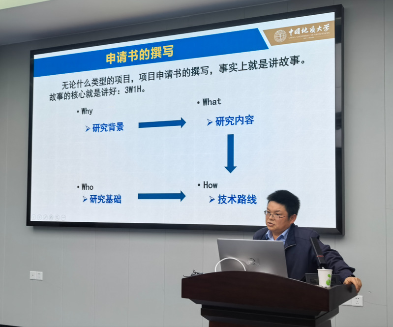 论坛特邀中国地质大学(武汉)王茂才教授作《国家自然科学基金申报体会》专题报告。王教授立足个人科研成长路径,聚焦国家自然科学基金面项目申报实践,从选题策略、申报书撰写、评审关注点等方面进行了深入浅出的剖析。报告主旨明确、内涵丰富,具有很强的指导性,受到与会教师的一致好评。