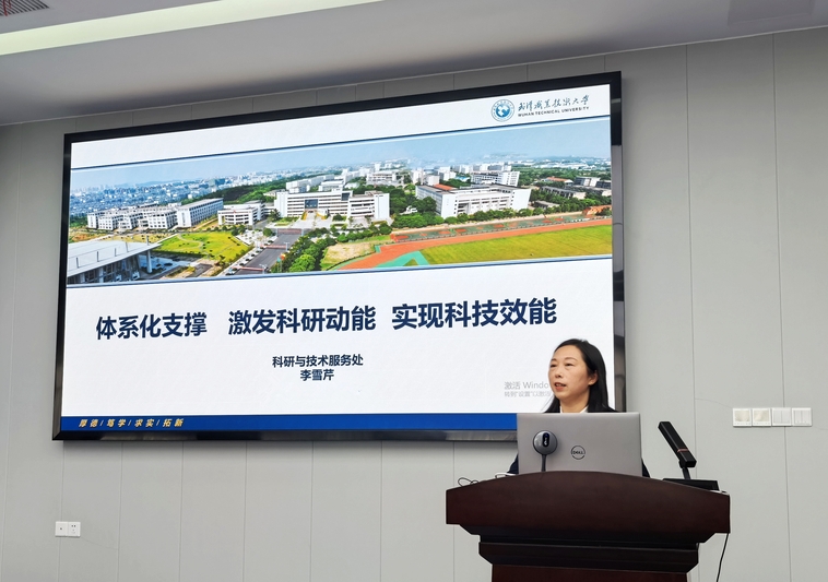 科研与技术服务处处长李雪芹以《体系化支撑 激发科研动能 实现科技效能》为题,立足职业本科建设和“双高校”建设,面向“十五五”科研规划编制,聚焦“机制创新、政策激励、制度保障、服务增效”四位一体的融合机制,系统阐释了学校科技创新与改革的路径与举措,鼓励广大教师积极开展高水平科技创新与研究。