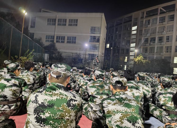 等太阳下班、月亮上线,操场即刻切换成“快乐模式”。灯火通明的训练场上,“战友们”席地而坐,把军训的酸痛抛到九霄云外。身边有人自告奋勇开唱,有跑调跑到“姥姥家”的“灵魂歌手”,也有一开口惊艳全场的“隐藏大神”,笑点和亮点齐飞。远处的教学楼像位安静的听众,给紧张了一天的训练,裹上一层温暖宁静的滤镜。这一刻不是训练的延续,而是青春最温柔的洗礼,让疲惫都化作了并肩相伴的美好。