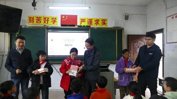 课后,智能制造学院教师第一党支部的党员教师们为孩子们送上书籍。邹阳动情地说:“知识和科技就像种子,今天我们把它种在孩子们心里,未来就有可能长成支撑乡村发展的参天大树。