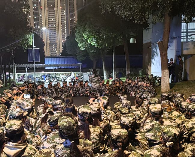 第三天晚训结束后,大家坐在路边等解散,个个都累得没力气说话,气氛有点沉闷。就在这时,教官笑着喊:“有没有同学愿意表演个节目,活跃活跃气氛?” 没人应声的间隙,后排的小林突然站起来:“我来跳段舞试试!”