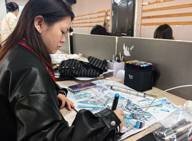 校企教师团队全程同步开展作业集中点评与一对一针对性辅导,及时纠正学生技法偏差,助力学生在短期内实现手绘能力的跨越式提升。