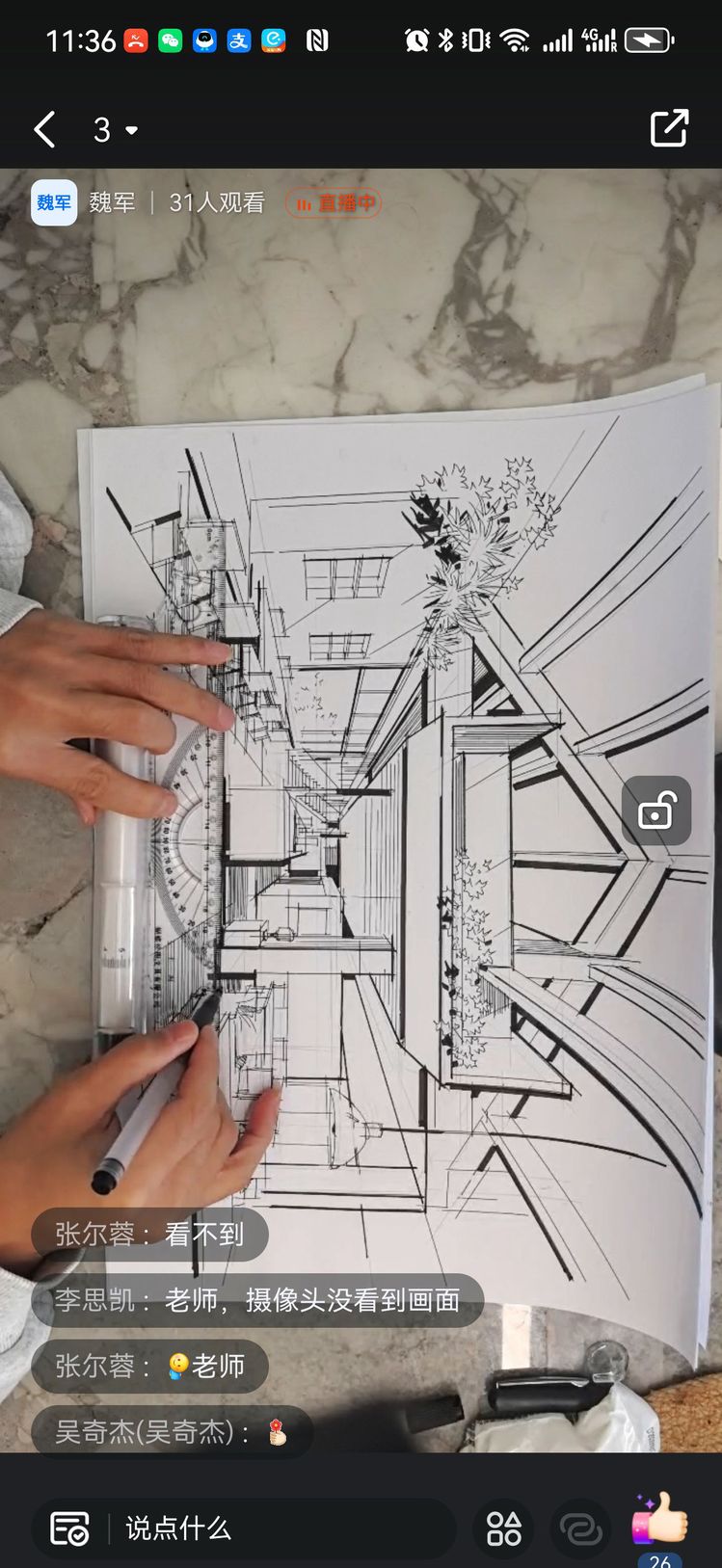 教学过程中,企业导师通过实时演示空间草图绘制、方案修改推演等实操环节,直观展现手绘在设计流程中的应用逻辑,并针对学生疑问开展互动答疑。这种沉浸式教学让学生深刻建立“手绘即思维表达”的专业认知,打破了“重软件、轻手绘”的认知误区,为后续技能训练与创意实践奠定了坚实基础。