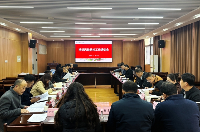新闻网讯(通讯员徐翔翔)11月18日,学校国有资产管理处组织开展招标风险防控专题培训会,邀请湖北省成套股份有限公司总工办副主任黄向东作专题讲座,校党委副书记胡象斌出席并提出工作要求。学校合作发展处、教务处、学生工作处、财务处、审计处、校园建设处、后勤保障处、信息化(网络安全)办公室、图书馆等职能部门,以及各二级学院相关负责人参加培训会。学校国有资产管理处副处长黄大海主持会议。