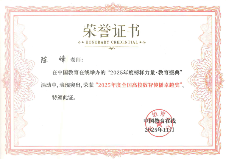 新闻网讯(党委宣传部王诚)近日,中国教育在线“榜样力量·2025年度教育盛典”优秀案例名单公布。武汉职业技术大学凭借在新媒体领域的成就与影响力,获评“2025年度新媒体影响力高职院校”。党委宣传部副部长陈峰荣获“2025年度全国高校数智传播卓越奖”。