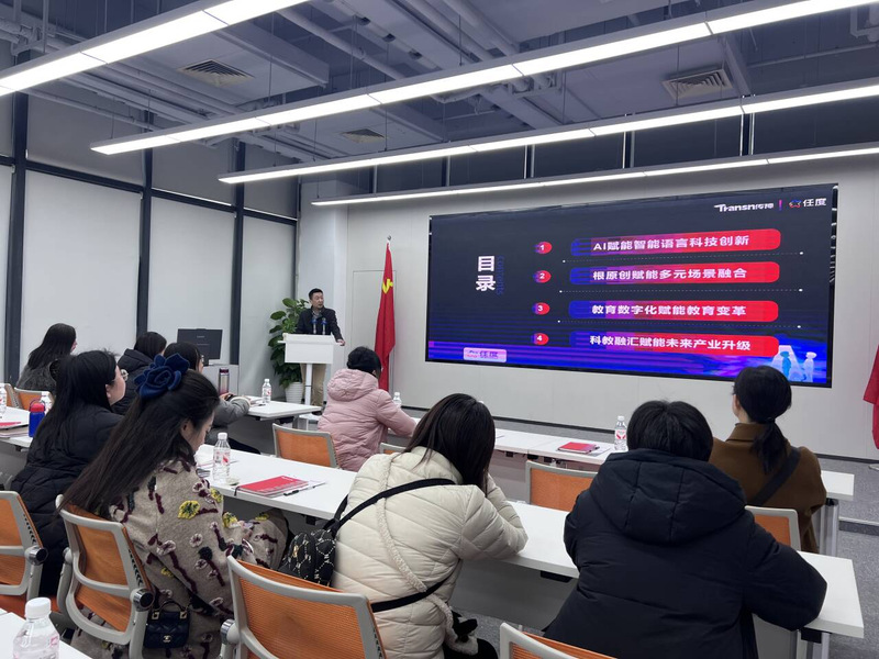 活动中,党员教师一行实地参观了传神公司的国家语言服务出口基地、大学生创新创业实践基地及未来空间,系统了解了企业坚持“原创”路线的技术成果。传神教育事业部资源总监靳伟详细介绍了AI赋能语言科技创新、原创大模型多场景融合、教育数字化变革及科教融汇推动产业升级等内容,让抽象的技术概念变得可感可知,为教师们后续推进教学改革提供了具体思路。