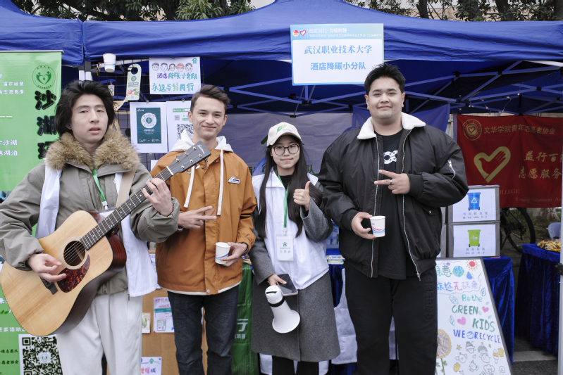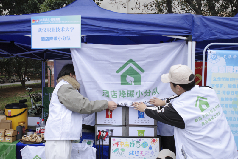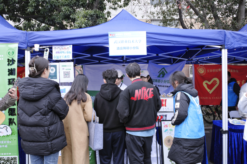 新闻网讯(通讯员胡驰)荆楚冬日暖,志愿正当时。12月4日下午,“志愿湖北·青暖荆楚”高校青年志愿服务主题交流分享暨“国际志愿者日”省级示范活动在华中农业大学大学生活动中心广场盛大举行。武汉职业技术大学酒店降碳小分队作为学校三支受邀团队之一,在活动现场设立专题展位,围绕“杯中有绿意,旅途无碳痕”主题,开展了一场集展示、体验、宣教于一体的低碳志愿服务,生动诠释了文旅行业的降碳行动与职教育人的实践成果。