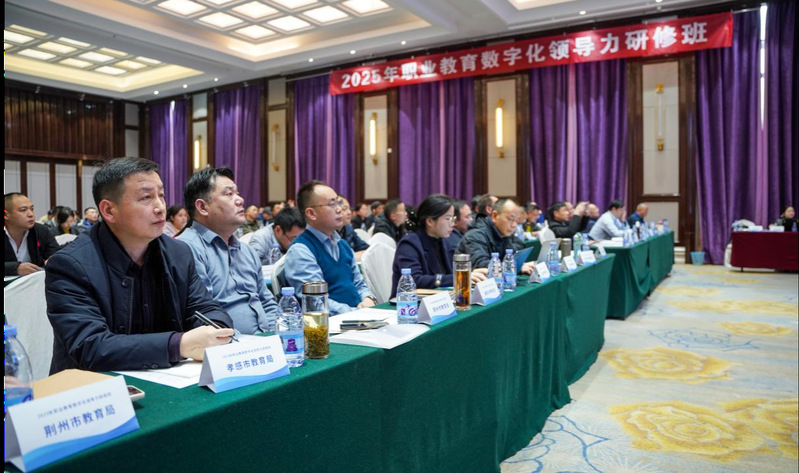 新闻网讯(通讯员徐芃柯、张寒、龙潭)2025年12月29日至31日,“2025年职业教育数字化领导力研修班”在武汉顺利举办,湖北省教育厅职成处二级调研员高月功、武汉职业技术大学党委副书记田明华、湖北电信政企信息服务事业群副总经理肖梅出席开班仪式。本次研修班由湖北省教育厅主办,武汉职业技术大学与中国电信湖北分公司联合承办,来自全省各市州教育局、高职和中职学校的近200名分管领导、信息化部门负责人参加研修。
