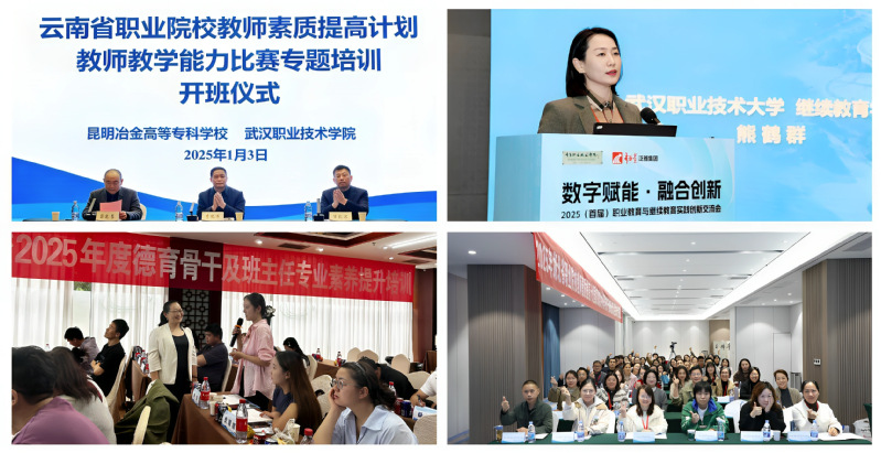 初心如刃,于格局突破中锻造标杆品牌。2025年,依托国家级师资培训基地,我们承接了16个省市自治区的23个项目,到款较上年增长40%,职教国培项目数、到款额均创历史新高,辐射范围扩增至全国28个省市自治区,1人入选教育部教师队伍建设专家指导委员会职业学校教师培训分委会,学校培训品牌影响力进一步扩大。参训学员中,有人拿到国家技能大赛一等奖,有人荣获全国优秀教师、有人走上重要领导岗位。在不懈努力下,“武职培训”正悄然写进职教师培的全国坐标系,印证了从跟跑、并跑到局部领跑的坚实步伐。