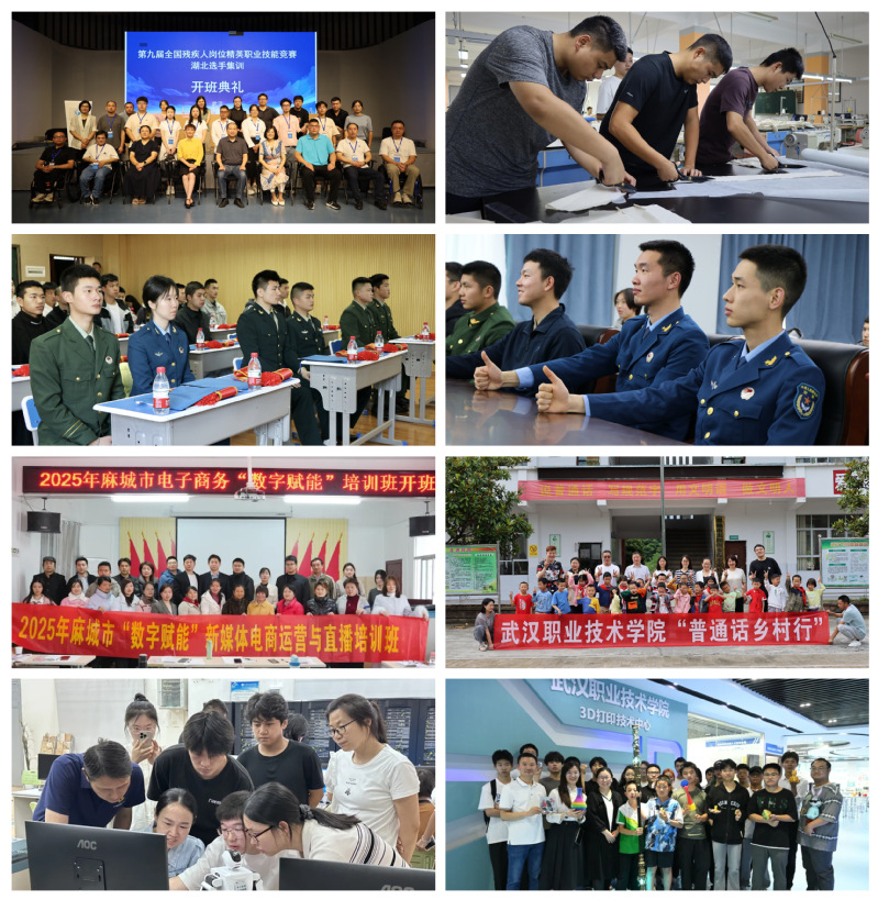 初心如舵,于时代变局中把稳战略航向。2025年,在培训市场竞争日趋激烈的态势下,我们统筹资源协同发力,实现培训工作量质齐升。全年开展培训项目328个,培训56662人次,达在校生的3.3倍,到款额相比2024年增长15%,开展职教师资培训30363人天、重点人群培训50486 人天,创新推出“武职夜校”项目8个,与头部企业共建联合培训点2个,形成“以培训促融合、以融合促发展”的良好局面。通过培训,我们让“职业教育”这四个字,变得具体生动,可感可亲。这份从容,源于我们始终守住方向、聚焦主责,在复杂环境中稳住了发展的“基本盘”;源于我们以改革破局、向创新发力,在变局中开拓了发展的“新赛道”。