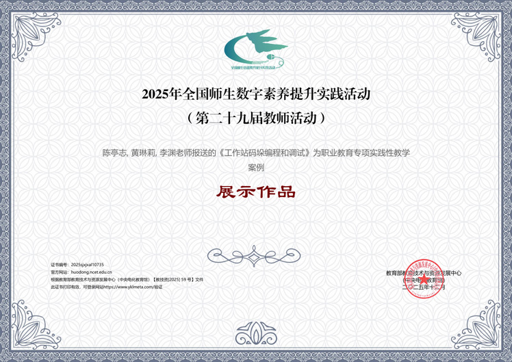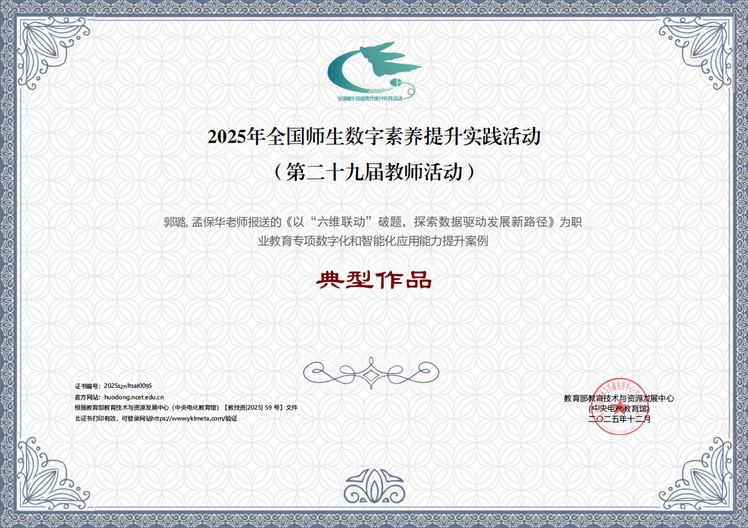此次六项作品获国家级殊荣,既是对学校近年来大力推进数字化、智能化转型工作的一次检验,也对我校在提升师生数字素养、促进数字技术与教育教学融合方面持续努力的高度肯定。接下来,学校将持续强化跨部门协同与资源整合,致力于将数字技术深度融入教育教学全过程与管理服务各环节,推动形成“技术赋能教学、教学牵引技术”的良性互动格局,扎实推进学校教育数字化转型战略落地见效,为学校高质量发展与高水平技术技能人才培养体系构建提供坚实支撑。