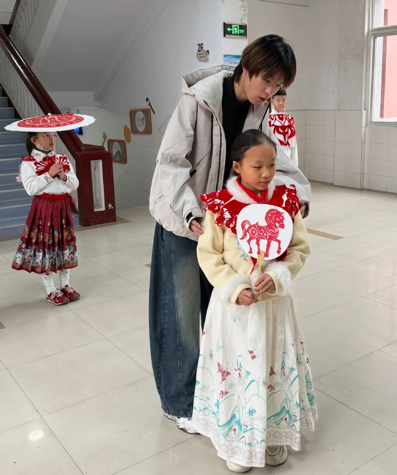 欢乐的时光总在不知不觉间溜走,活动临近尾声,孩子们攥着大学生志愿者的衣角不肯松开,接连追问:“大哥哥大姐姐下次还来吗?”“还能再为我们办时装秀吗?”带队教师杜恒笑着蹲下身摸了摸孩子们的头:“当然会来,我们还要把更多美好和乐趣带给大家。”大学生志愿者李奇隆也凑过来,晃了晃手里的走秀笔记:“下次咱们一起设计更有创意的服装,教你们走更酷的台步呢。”