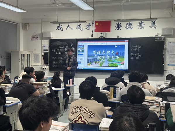 走进汉川中职教室,面对台下期待的目光,智能制造学院机制25303班王金条理清晰地拆解了机械专业的核心课程体系,展示了大学优质的实训教学资源,为学弟学妹们勾勒出“技能深造 — 职业发展”的清晰路径。“现场学子们眼中的期待与坚定,让我愈发明白此次宣讲的意义。”王金坦言,汉川中职是梦想的起点,武职大则是成长的阶梯,愿尽己所能,为中职母校学弟学妹们照亮技能深造的前行之路,助其在职业发展的道路上少走弯路。