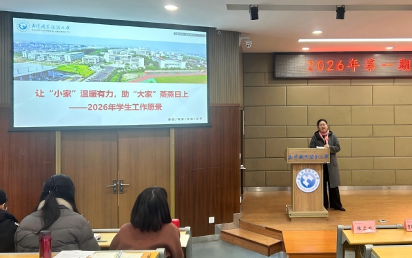 学工处陶舒处长以《让“小家”温暖有力,助“大家”蒸蒸日上》为题,全面总结了2025年学生工作成效,明确了2026年重点工作任务,她提出要以“有温度、有底气、有追求”为标尺淬炼自身素养;以“懂学生、爱学生、育学生”为准则筑牢育人初心;以“成长有迹可循、付出有获可感、价值有光可耀”为目标凝聚育人合力,当好学生成长路上的引路人,推动学生工作提质增效。
