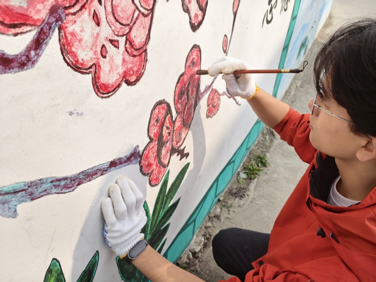 这个寒假,建筑工程学院“砼心筑梦”社会实践小分队怀揣着对乡土的牵挂,重返暑期社会实践基地——武汉市新洲区阳逻街军民村。2025年夏天,队员们在这里精心绘制的“清正廉洁”主题文化墙,成为村内一道独特的风景线。此次回访,章聪、胡世彬两位同学细致检查每一处墙绘状况,对受风雨侵蚀出现的细微破损进行精心修补。他们一边忙活,一边与围观的村民热情攀谈,熟悉的乡音、亲切的笑脸,让冬日的村庄充满了暖意。