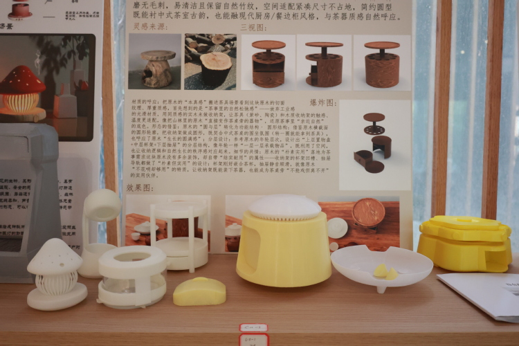 立足服务国家战略与地方发展,学院将项目课程与乡村振兴战略、地方文化产业发展需求紧密结合,推动地域文化资源的创新转化与价值提升。教师杨珺的《陈设设计》课程以湖北特色农产品为主题,开展IP文创设计与平面图创作,并运用“即梦AI”制作宣传视频,助力农产品品牌推广;产品专业教师张悦的《文化创意产品设计》聚焦杭州良渚文化,深入挖掘传统文化基因,探索传统元素的当代设计转译路径。这些项目引导学生从地域文化中汲取创作灵感,用现代设计语言赋予传统文化新的时代生命力,彰显了设计学科服务地方经济社会发展的使命担当。