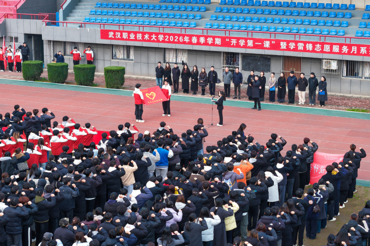 新闻网讯(通讯员 王凯 摄影 张马涛、陈邵军、周心怡)春风启新程,“锋火”永相传。3月9日清晨,武汉职业技术大学2026年春季学期“开学第一课”升旗仪式暨学雷锋志愿服务月系列活动启动仪式在光谷校区体育场举行,副校长刁元斌出席并讲话。学生工作处、保卫处、团委相关负责人,各二级学院分团委书记,校院两级团学骨干及学生代表共计1000余人参加仪式。仪式由校团委书记余娜主持。