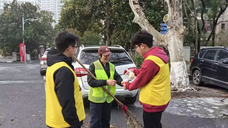 循着楼宇通道往里走,逸思楼的管理员早已开启全天忙碌:逐项巡检设备、细致登记台账、逐层排查安全隐患,件件琐事都打理得井井有条。“杨阿姨,您辛苦了!”物业24301班章聪一边热情招呼,一边送上温热的早餐。入党积极分子们主动挽起袖子帮忙清理楼道杂物、规整办公物品,边忙活边唠起日常。“咱们这栋楼师生多,每一处细节都不能马虎,守好楼宇安全,就是守好我们共同的家园。”管理员笑着回应,朴实的话语里满是责任心。接过温热的早餐,她眉眼舒展,连连夸赞这群孩子懂事又暖心。