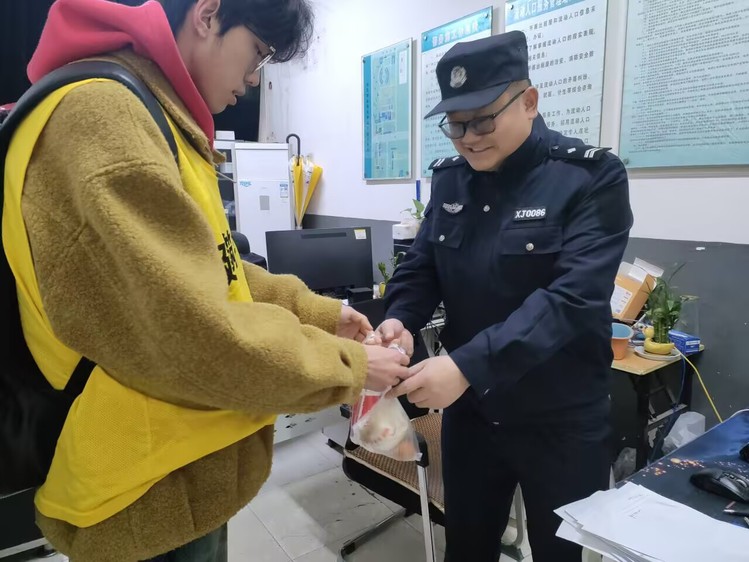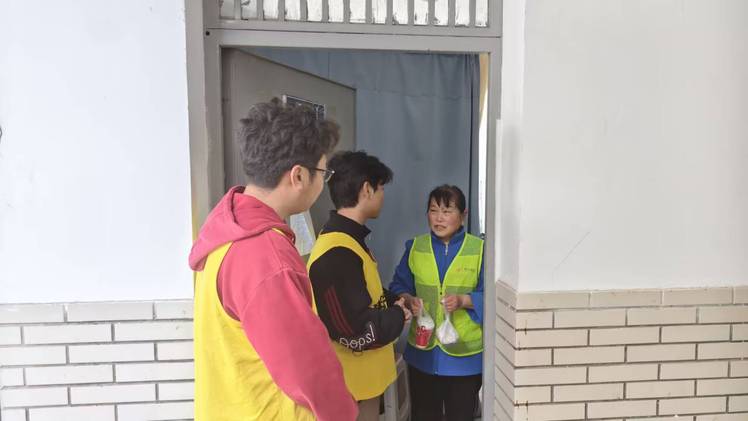关山大道校门口的门卫室里,安保人员陈士杰紧盯入校通道,严谨核对外来人员信息、查验相关证件,牢牢筑牢校园安全第一道防线。“您值守一早就没歇着,快吃点东西暖暖身子!”一名志愿者递上早餐,跟着学习门禁核验、巡逻值守的流程,聆听岗位心得。“我们24小时轮班,刮风下雨都不能离岗,守住校门、护好师生,就是咱的本分。”陈士杰拍了拍学子们的肩膀,眼里满是欣慰。这份双向奔赴的善意,让春日清晨的校园多了一分温情。